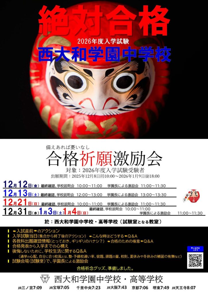 西大和学園中学校 “備えあれば憂いなし”『合格祈願激励会』の申込が始まりました。